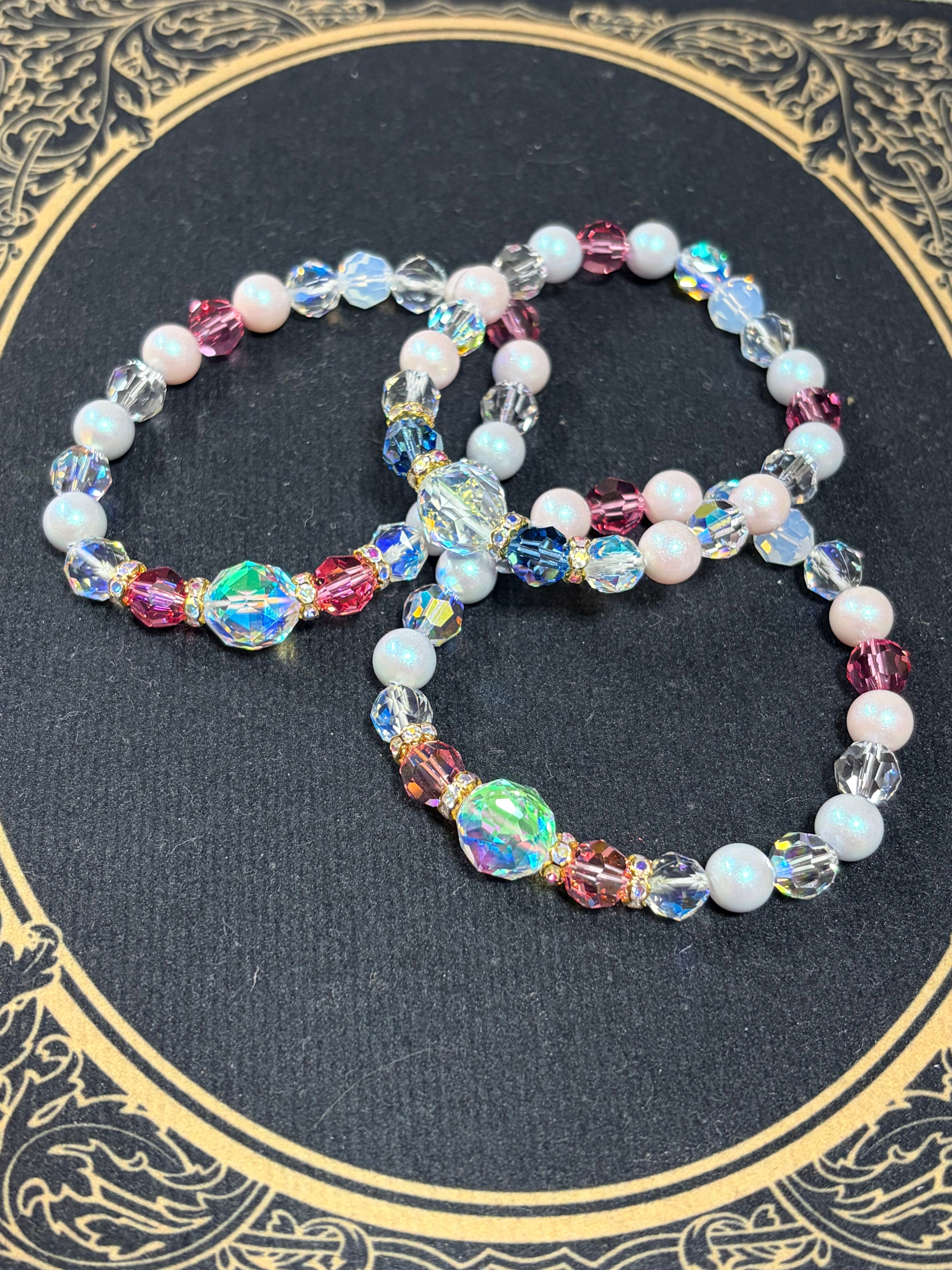 10㎜玉のスターカットルナフラッシュを真ん中に、サイドの貴和クリスタルを変えて他は同配色なブレスレット。